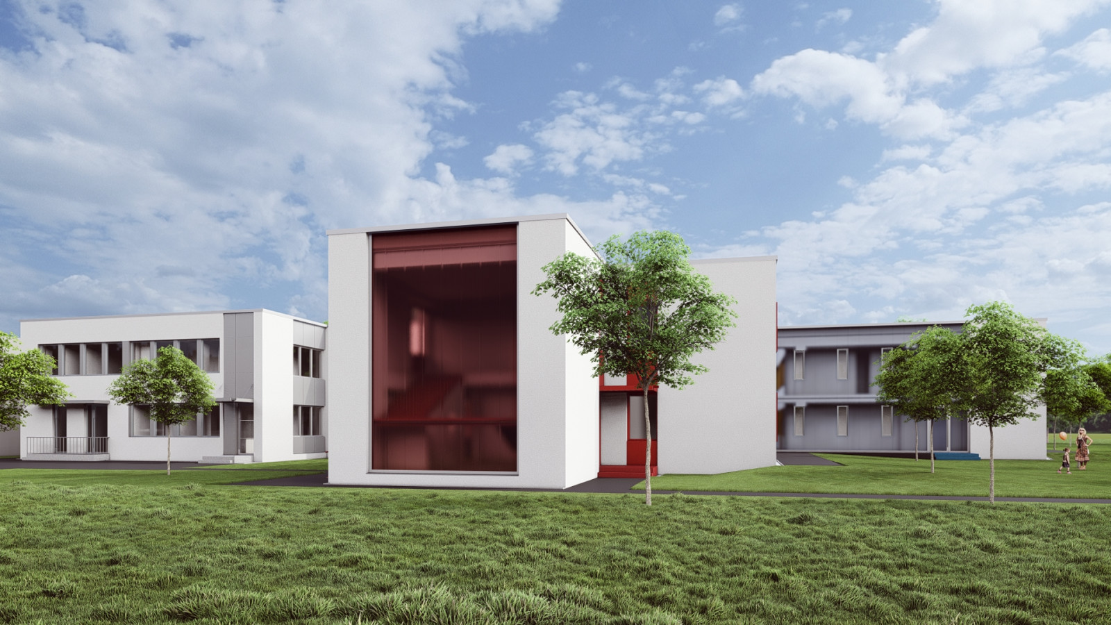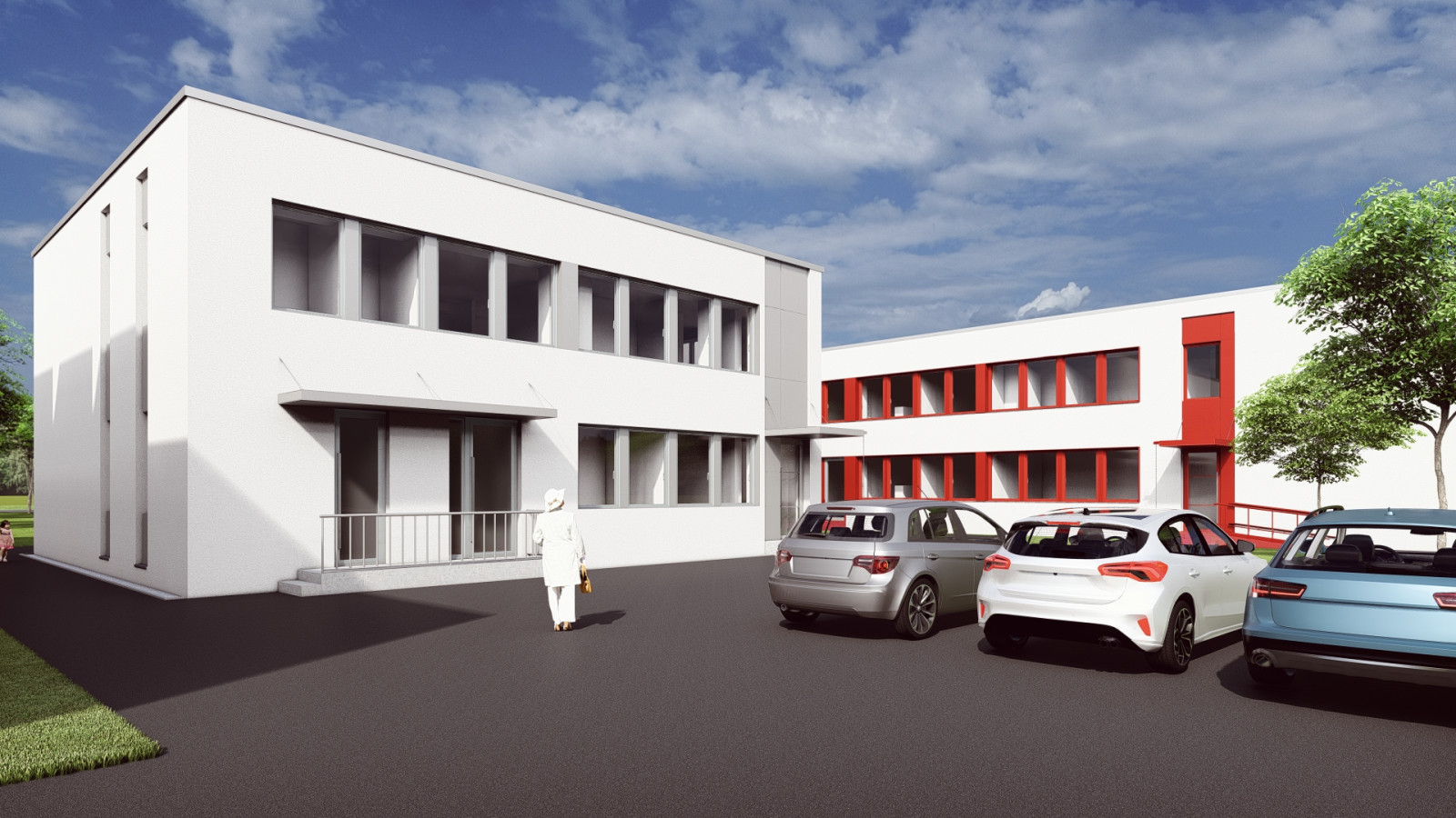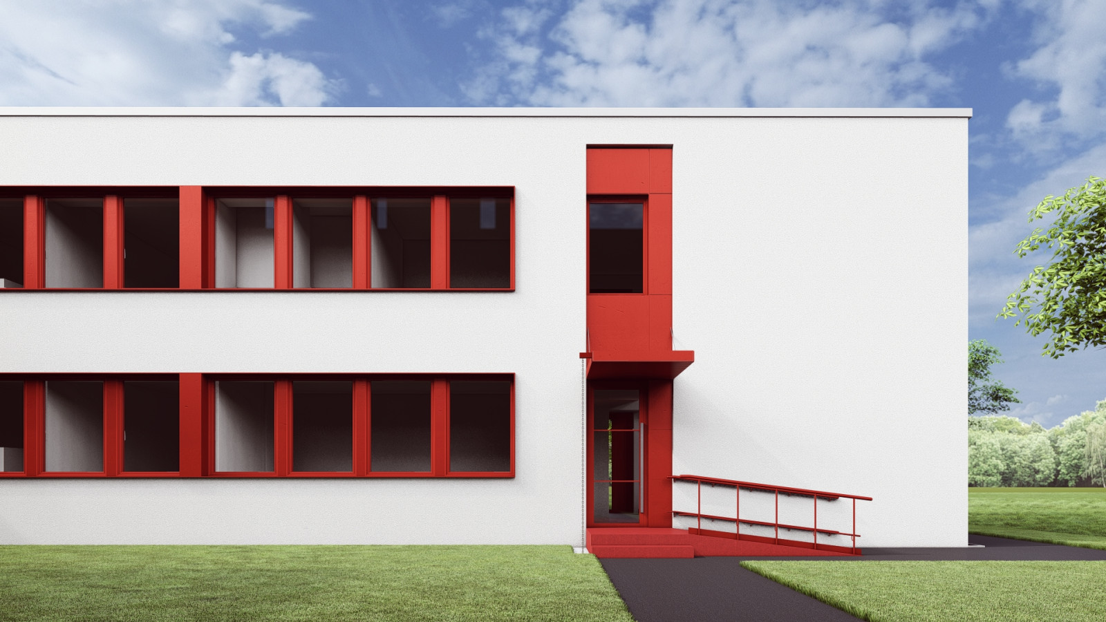 Pri navrhovaných úpravách sa usilujeme o zachovanie a čitateľné zdôraznenie funkcionalistickej architektúry objektu. Modernizácia zahŕňa výmenu pôvodných výplní otvorov za kvalitné okná s trojsklom, ktoré rešpektujú mierku a rytmus fasád. Hlavný vstup zo severnej strany, medzi pavilónmi „A“ a „B“, bude v návrhu výraznejšie artikulovaný, aby bol vizuálne čitateľný a prirodzene navigoval návštevníkov.