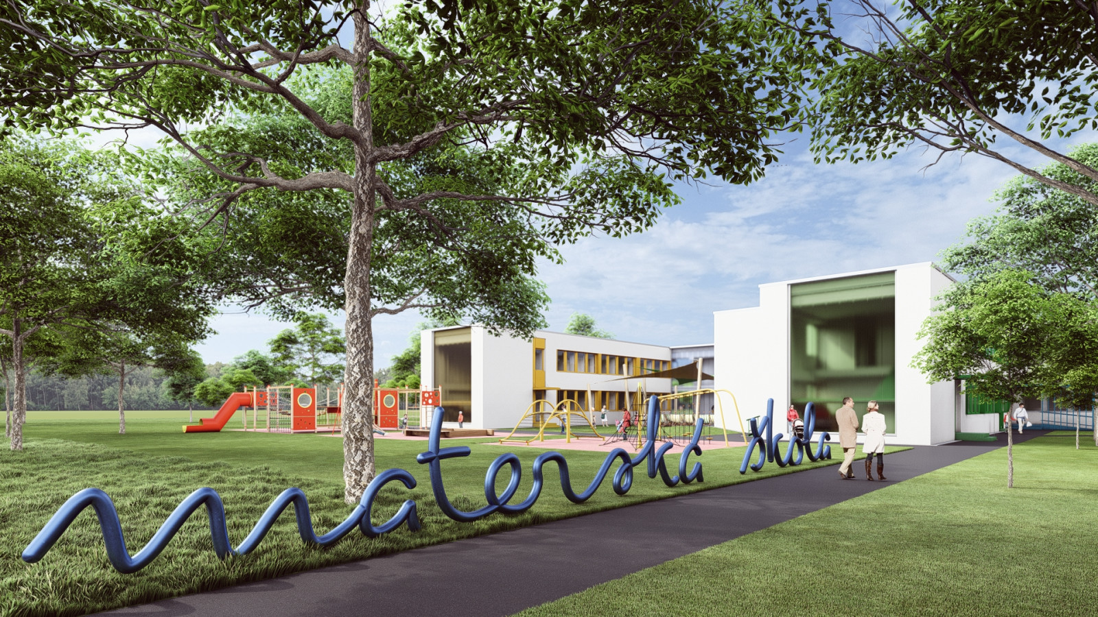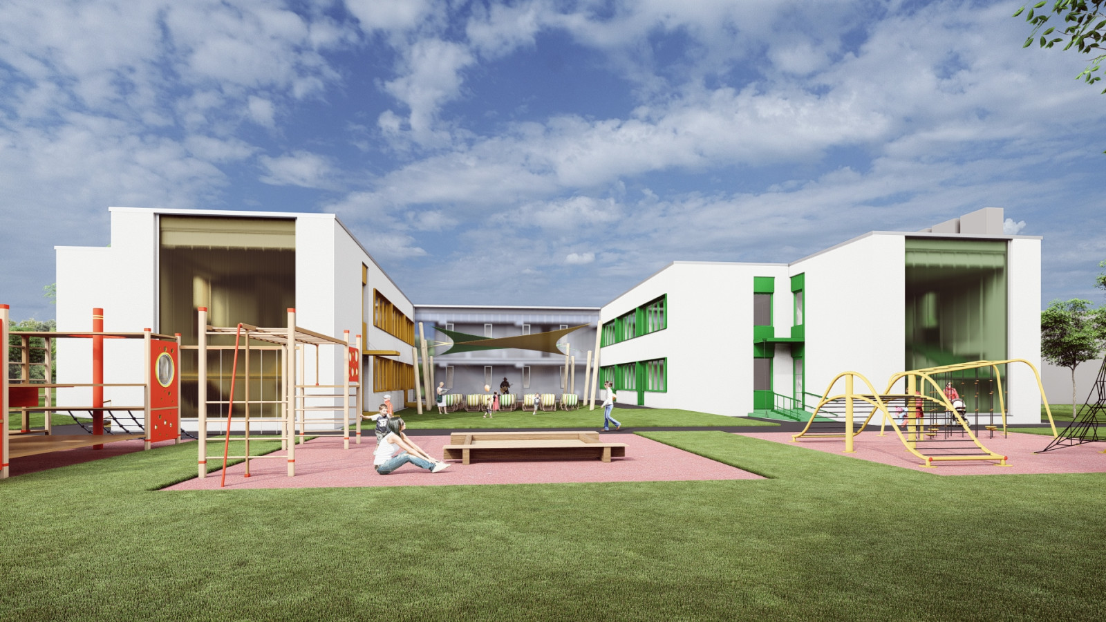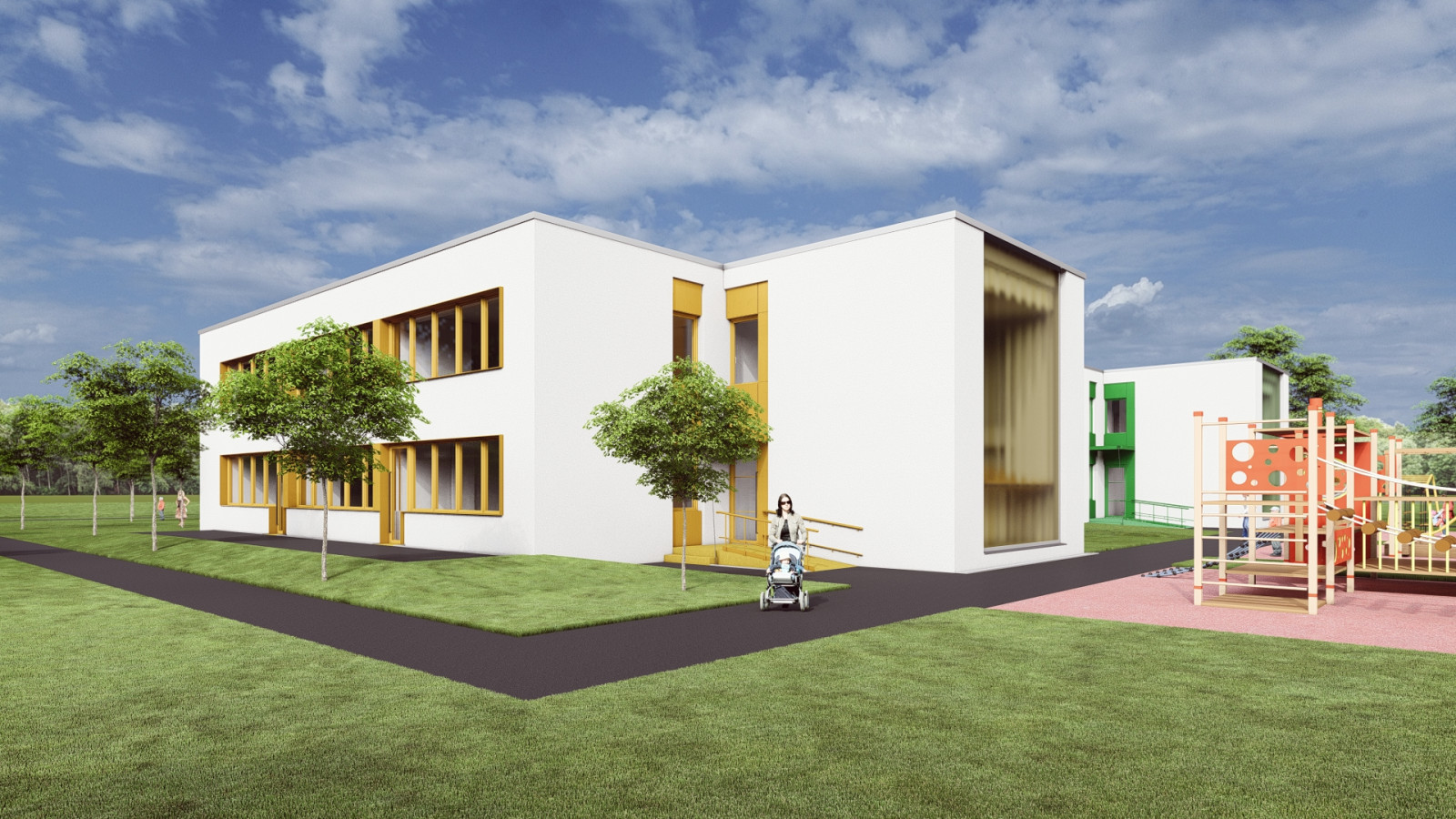 Objekt materskej školy je situovaný v centrálnej časti riešeného územia a pozostáva zo štyroch pavilónov. Pavilóny s triedami sú orientované pozdĺžnymi stenami v smere sever – juh, pričom prevádzkový pavilón „A“ je umiestnený kolmo na ne a jeho pozdĺžne fasády sú orientované severozápad – juhovýchod. Všetky pavilóny sú navzájom prepojené jednopodlažnou prepojovacou chodbou, čím vytvárajú kompaktný a prehľadný celok.