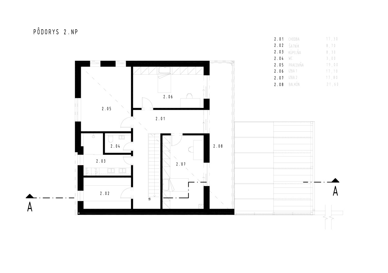 Na 2.NP sú situované dve detské izby, kúpeľňa s toaletou, samostatný šatník a pracovňa. Izby aj chodba majú prístup na balkón, ktorý zabezpečuje kvalitné presvetlenie a kontakt s exteriérom.